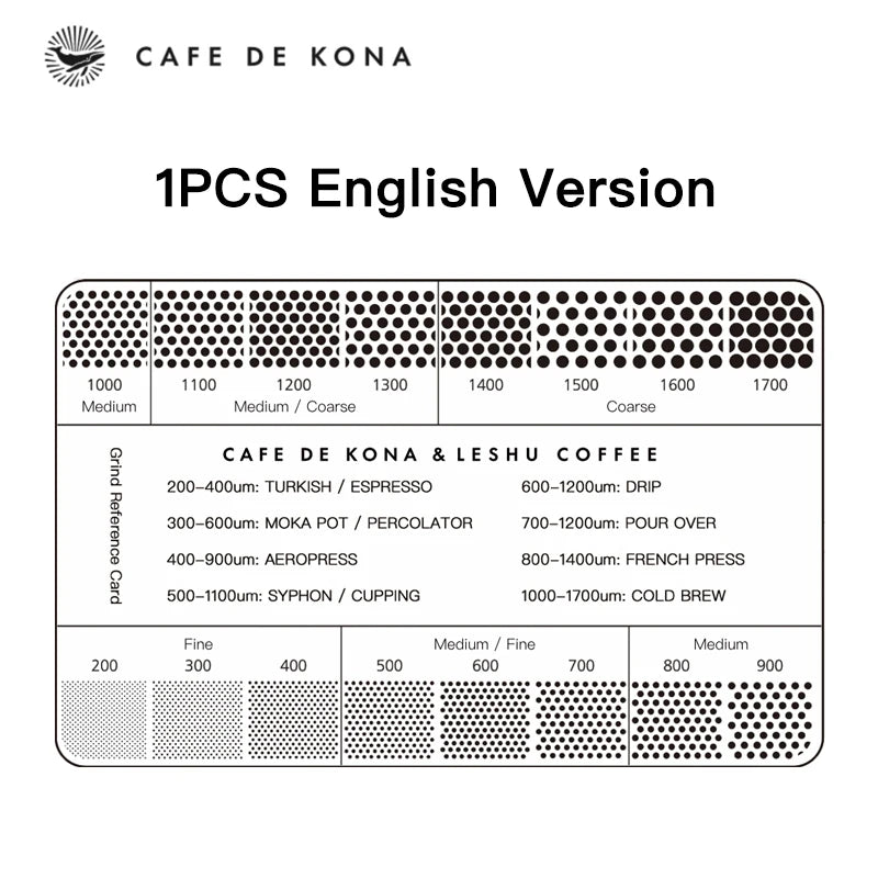 Ground Coffee Grind Reference Card Size 200-1700um Coffee Accessories Conversion Card For Common Brewing Related Conversions